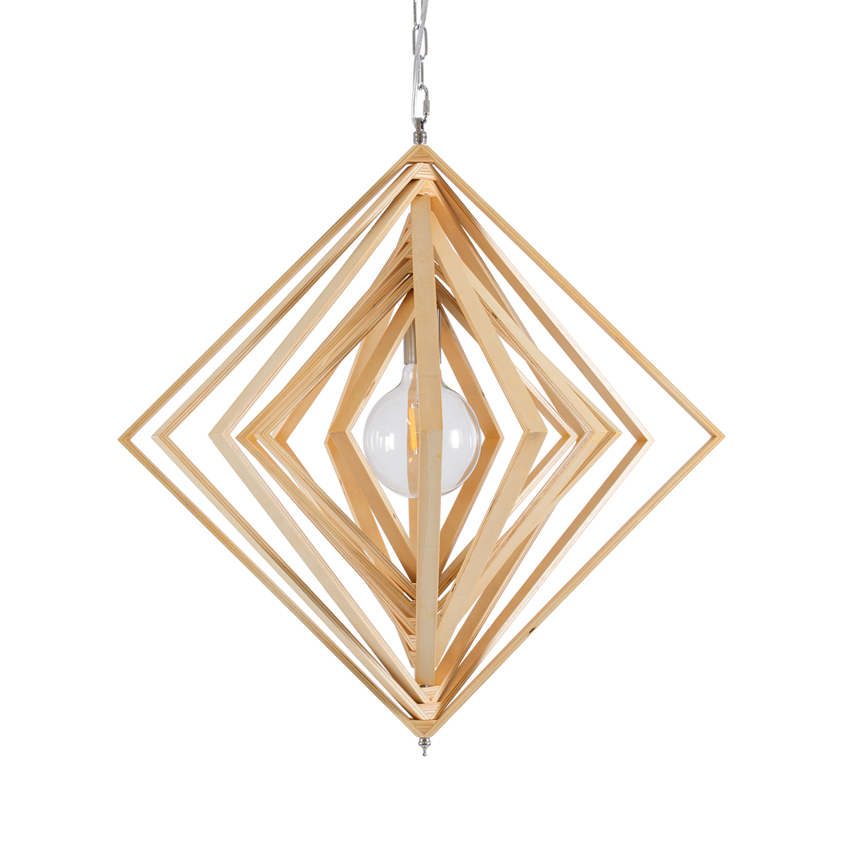 GloboStar® OCTAVE 01431 Μοντέρνο Κρεμαστό Φωτιστικό Οροφής Μονόφωτο Μπεζ Ξύλινο Μ64 x Π64 x Y66cm