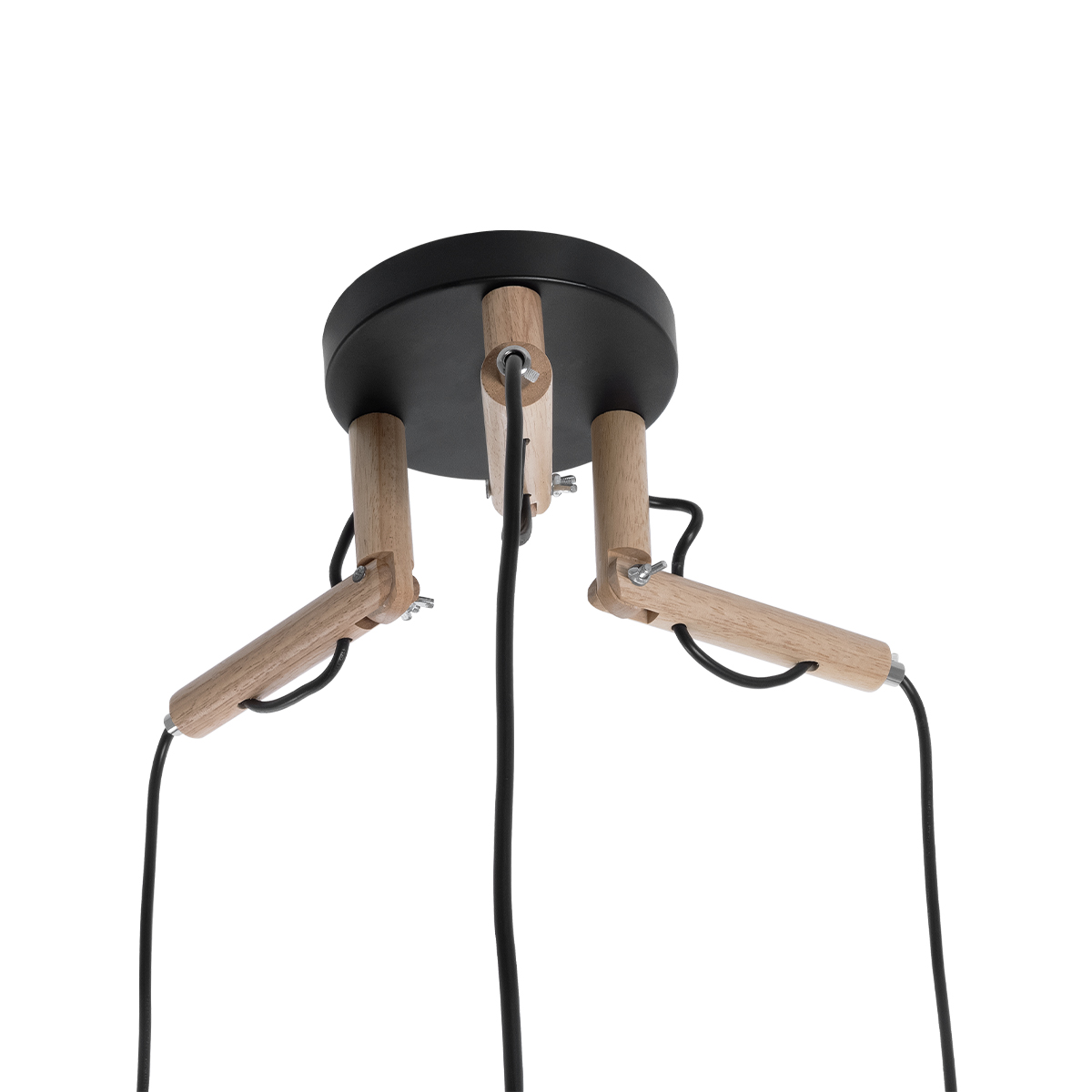 GloboStar® RAMSON 01525 Μοντέρνο Κρεμαστό Φωτιστικό Οροφής Τρίφωτο Μαύρο με Ξύλο και Υφασμάτινα Καπελα Φ67 x Υ65cm