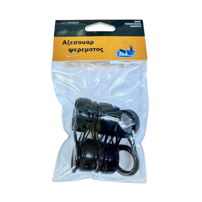 Δυνατές, ανθεκτικές θηλιές, ιδανικές για νήμα. Βοηθούν στην ομαλή μετάδοση της κίνησης της πετονιάς από το μηχανάκι μέσα από τους οδηγούς του καλαμιού και ελέγχουν αποτελεσματικά την πετονιά από τον πρώτο οδηγό, απαλείφοντας τις βιρίνες της. Βελτιώνεται σημαντικά η συμπεριφορά του καλαμιού, αυξάνεται η ισορροπία του και επιτυγχάνονται ακριβέστερες και μακρύτερες βολές. Είναι ελαφριές για να μειώνεται το συνολικό βάρος και χάρη στον εργονομικό σχεδιασμό, ελαχιστοποιείται ο κίνδυνος μπερδέματος. Το σετ περιλαμβάνει 5 οδηγούς διαφορετικού μεγέθους. Αυθεντικό προϊόν Tradesor.