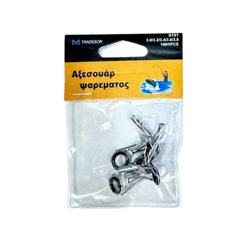 Δυνατές, ανθεκτικές θηλιές, ιδανικές για νήμα. Βοηθούν στην ομαλή μετάδοση της κίνησης της πετονιάς από το μηχανάκι μέσα από τους οδηγούς του καλαμιού και ελέγχουν αποτελεσματικά την πετονιά από τον πρώτο οδηγό, απαλείφοντας τις βιρίνες της. Βελτιώνεται σημαντικά η συμπεριφορά του καλαμιού, αυξάνεται η ισορροπία του και επιτυγχάνονται ακριβέστερες και μακρύτερες βολές. Είναι ελαφριές για να μειώνεται το συνολικό βάρος και χάρη στον εργονομικό σχεδιασμό, ελαχιστοποιείται ο κίνδυνος μπερδέματος. Το σετ περιλαμβάνει 5 οδηγούς διαφορετικού μεγέθους. Αυθεντικό προϊόν Tradesor.