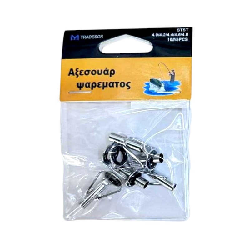 Δυνατές, ανθεκτικές θηλιές, ιδανικές για νήμα. Βοηθούν στην ομαλή μετάδοση της κίνησης της πετονιάς από το μηχανάκι μέσα από τους οδηγούς του καλαμιού και ελέγχουν αποτελεσματικά την πετονιά από τον πρώτο οδηγό, απαλείφοντας τις βιρίνες της. Βελτιώνεται σημαντικά η συμπεριφορά του καλαμιού, αυξάνεται η ισορροπία του και επιτυγχάνονται ακριβέστερες και μακρύτερες βολές. Είναι ελαφριές για να μειώνεται το συνολικό βάρος και χάρη στον εργονομικό σχεδιασμό, ελαχιστοποιείται ο κίνδυνος μπερδέματος. Το σετ περιλαμβάνει 5 οδηγούς διαφορετικού μεγέθους. Αυθεντικό προϊόν Tradesor.