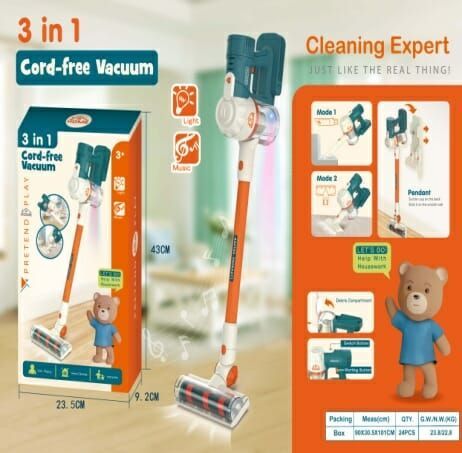 Παιδική φορητή ηλεκτρική σκούπα που μετατρέπεται και σε σκουπάκι χειρός, με εναλλασσόμενες κεφαλές. Τώρα έχεις τη δική σου ηλεκτρική σκούπα για να βοηθάς στη καθαριότητα του σπιτιού, διασκεδάζοντας! Σε πανέμορφα χρώματα και με λειτουργία μπαταρίας για να προσφέρει μία ρεαλιστική εμπειρία καθαριότητας!