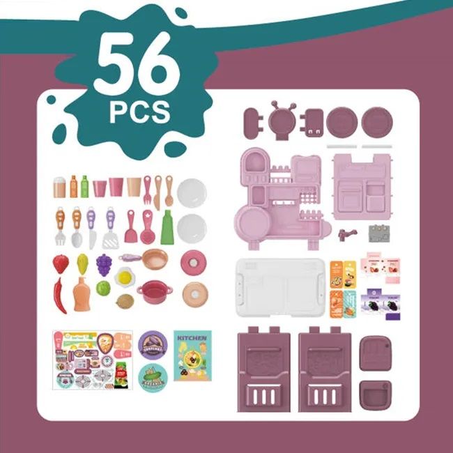 Παιδική κουζίνα με πάγκο, με πλήρες σετ αξεσουάρ μαγειρικής και φωτισμό.