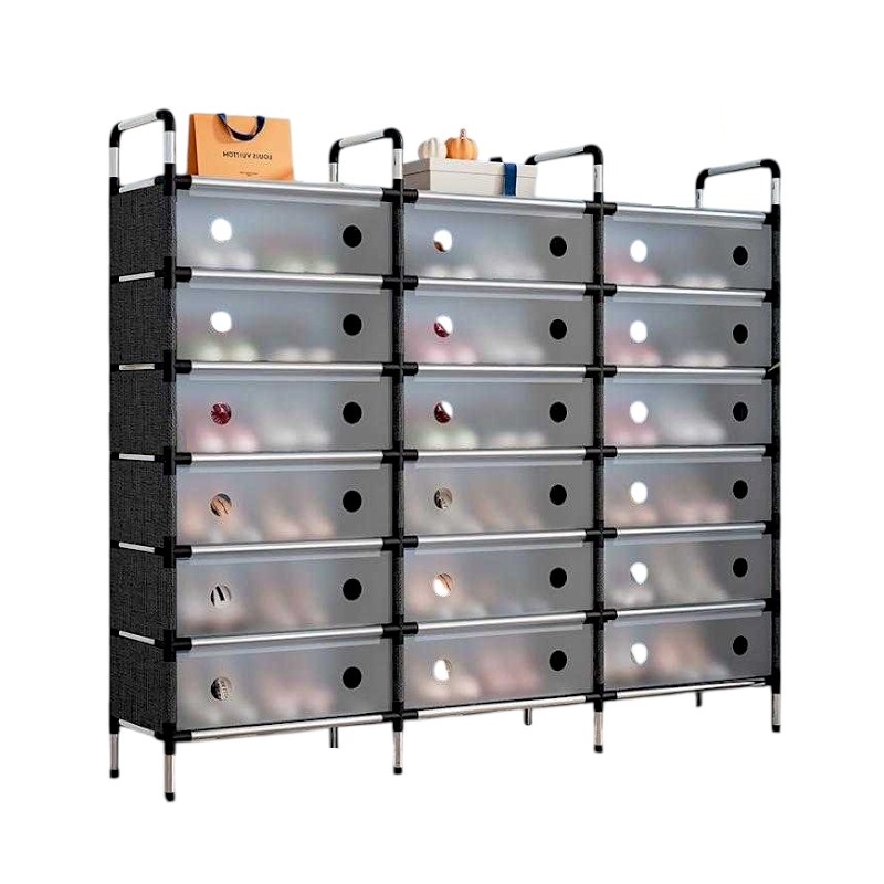 Παπουτσοθήκη δαπέδου με ράφι, με μεταλλικό σκελετό και συρταρωτές θήκες με λεπτή, πλαστική, εύκαμπτη πρόσοψη,