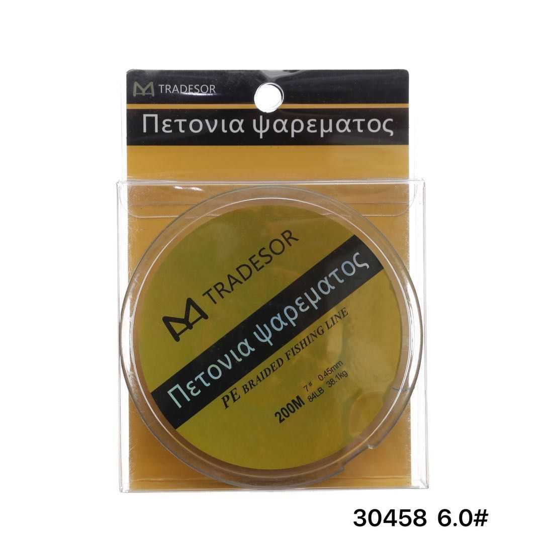 Η Tradesor, βάσει της υψηλής τεχνογνωσίας και του τεχνολογικού εξοπλισμού που χρησιμοποιεί, έχει κατασκευάσει μια σειρά από πετονιές ψαρέματος υψηλής ποιότητας και αντοχής. Ο τρόπος με τον οποίο έχουν σχεδιαστεί εξασφαλίζει στην πετονιά μηδενική μνήμη, ταχεία βύθιση και συνάμα την κάνει εξαιρετικά μαλακή παρά την μεγάλη αντοχή της. Είναι 100% αόρατη με μεγάλες αντοχές στον κόμπο και στα γδαρσίματα. Μέγεθος: 200m/6.0mm