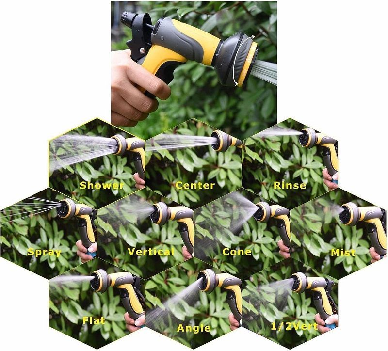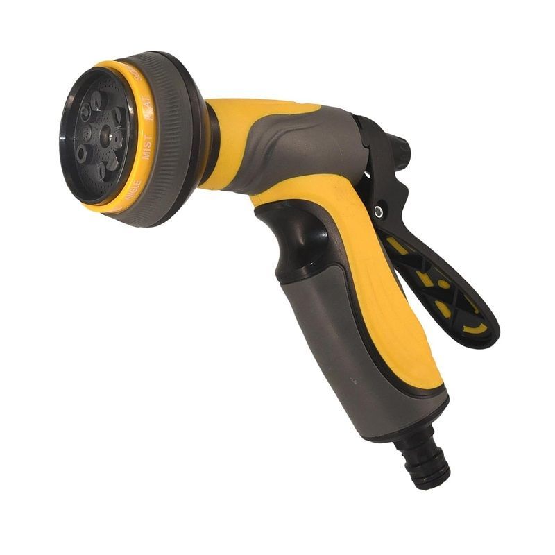 Πιστόλι ποτίσματος για λάστιχο με σκανδάλη και 10 διαφορετικές ρυθμίσεις ψεκασμού και πίεσης. Εργονομική λαβή και κατασκευή ανθεκτική στην υψηλή πίεση. Διαστάσεις: 21x19cm.
