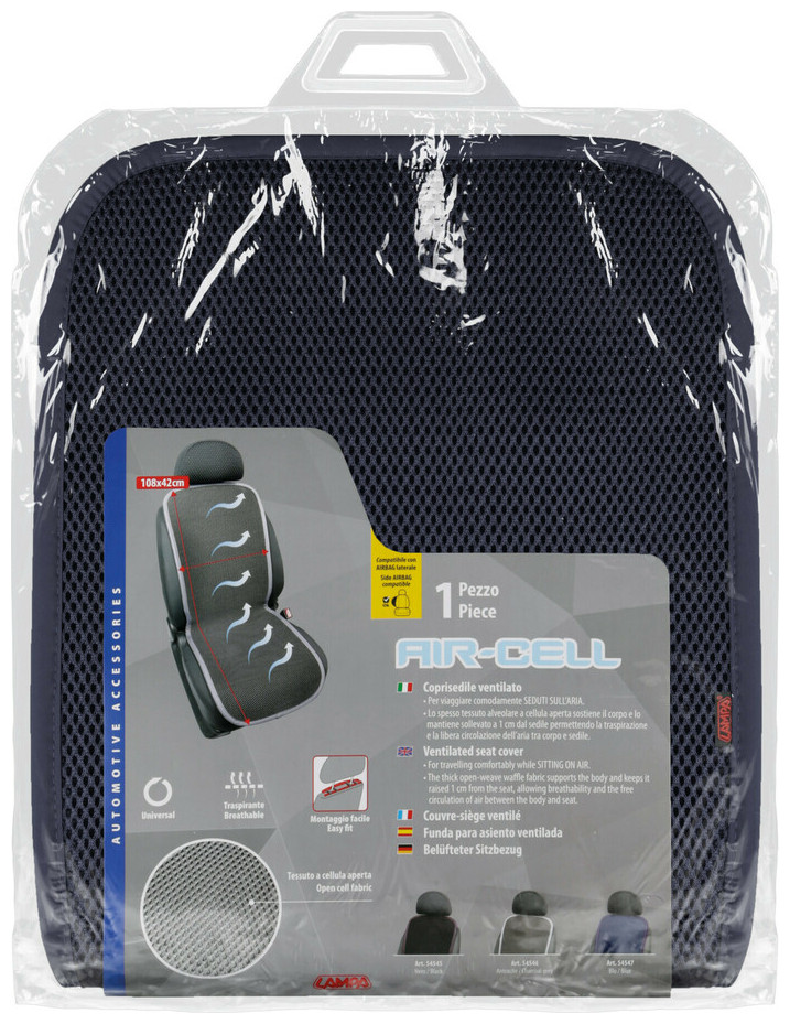 Για άνετα ταξίδια. Το χοντρό ύφασμα ανοικτής ύφανσης στηρίζει το σώμα και το κρατά ανασηκωμένο 1 εκατοστό από το κάθισμα και την πλάτη, επιτρέποντας την αναπνοή και την ελεύθερη κυκλοφορία του αέρα μεταξύ του σώματος και του καθίσματος. Συμβατό με πλευρικό αερόσακο. Διαστάσεις: 108x42 cm