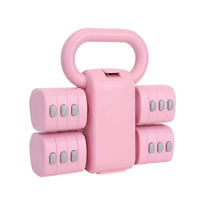 Μπορείτε να ρυθμίσετε και να χρησιμοποιήσετε ξεχωριστά το κάθε βαράκι αλλά και να τα ενώσετε στην ειδική θήκη με τη χειρολαβή, μετατρέποντας τα σε kettlebell.