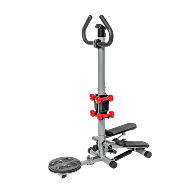 έχεις ένα πλήρες γυμναστήριο στο χώρο σου, για καθημερινή άσκηση χωρίς περιορισμούς! Ενα πλήρως εξοπλισμένο σετ με στέπερ, δίσκο περιστροφής και βαράκια, για ολοκληρωμένη γυμναστική στην άνεση του σπιτιού σας χωρίς έξτρα εξοπλισμό.