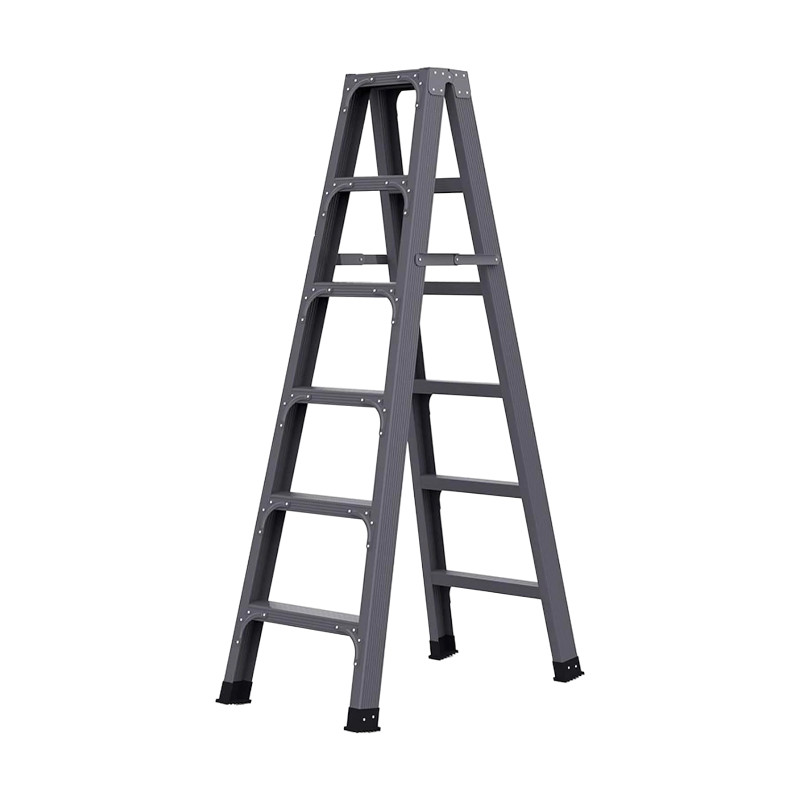 Πτυσσόμενη σκάλα 6 επιπέδων, με στιβαρή κατασκευή αλουμινίου, και εργονομική σχεδίαση για εύκολη χρήση και αποθήκευση.