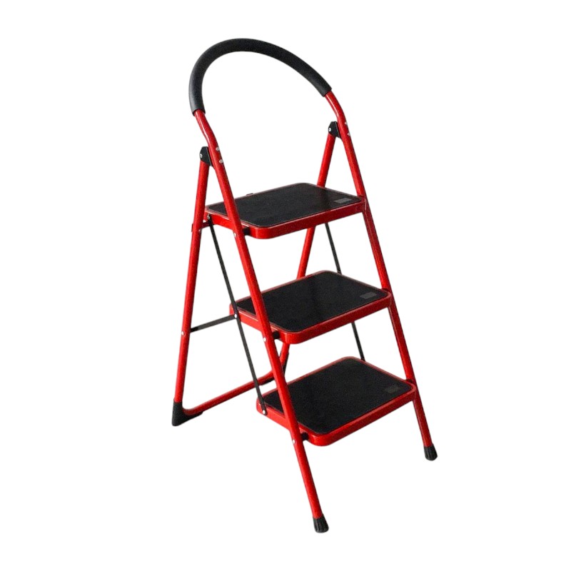 Πτυσσόμενη σκάλα 3 σκαλιών, με στιβαρή σιδερένια κατασκευή και εύκολη αποθήκευση.