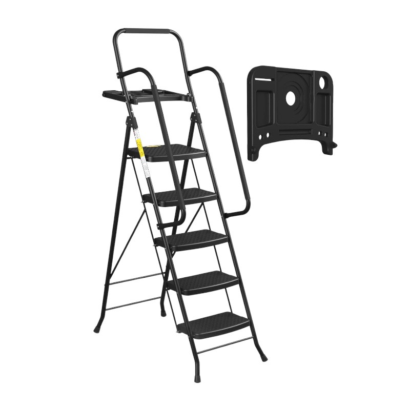 Πτυσσόμενη σκάλα, με στιβαρή σιδερένια κατασκευή, και εύκολη αποθήκευση.