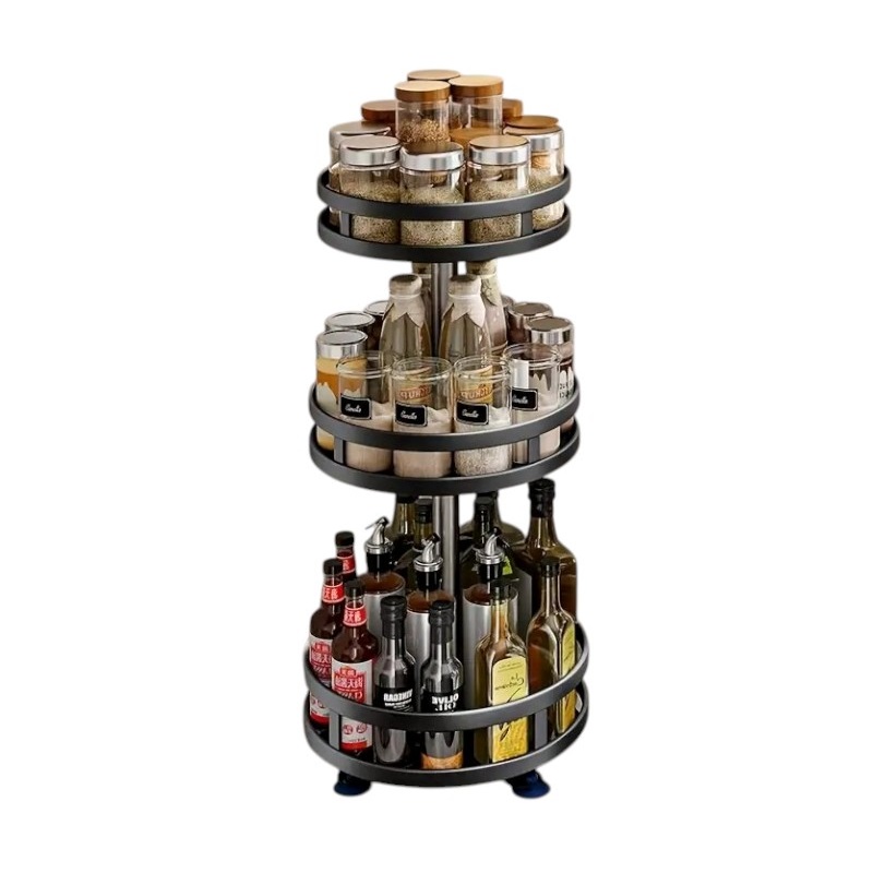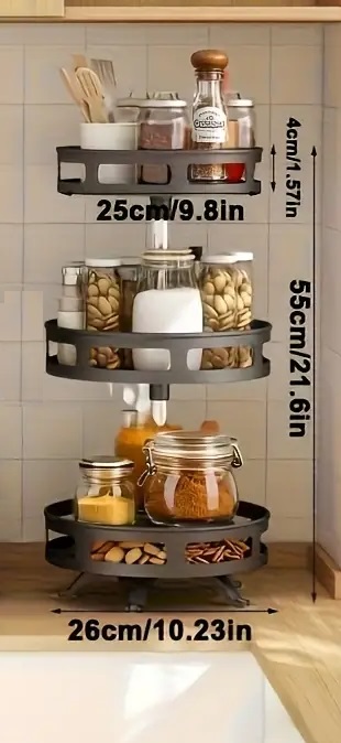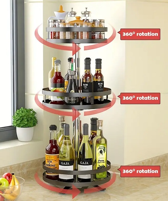 Ραφιέρα οργάνωσης πάγκου κουζίνας με μεταλλικό σκελετό, με πλαστικά ράφια περιστρεφόμενα 360 μοίρες,