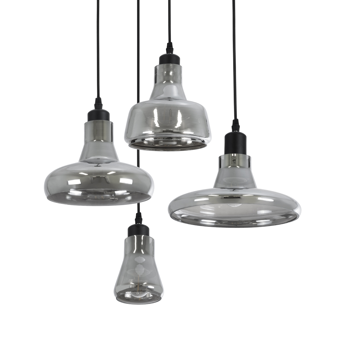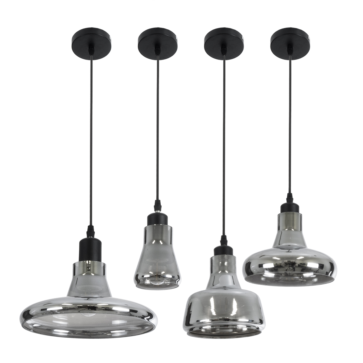 GLOBOSTAR® FEMINE 01011 Μοντέρνο Κρεμαστό Φωτιστικό Οροφής με Ντουί 4 x E27 AC 220-240V IP20 - Γκρι & Μαύρο - Μ70 x Π70 x Y24.5cm - Σετ 4 Τεμαχίων