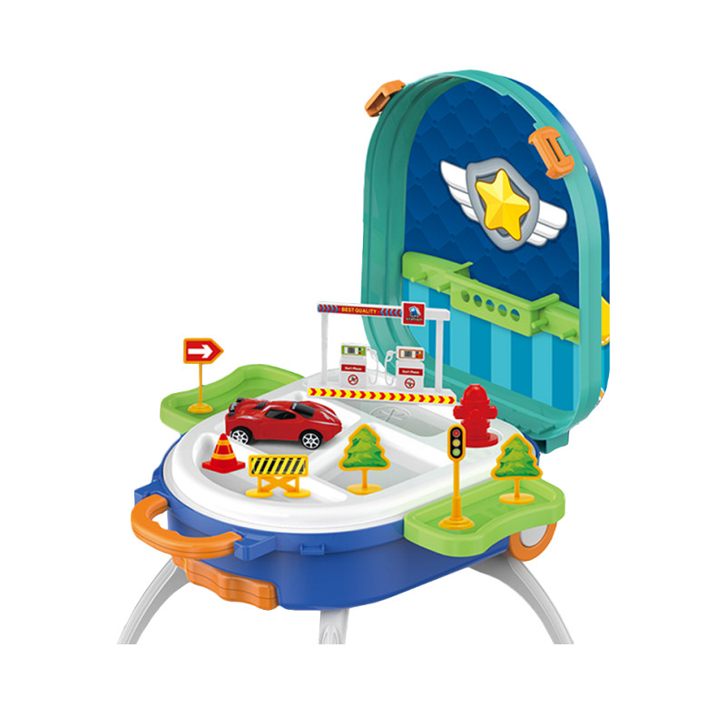 Σετ πάγκος-αυτοκινητόδρομος City Racing που μετατρέπεται πολύ εύκολα σε βαλιτσάκι τρόλεϋ με χειρολαβή για εύκολη μεταφορά. Περιλαμβάνει 4 αυτοκινητάκια και πλήρες σετ με σήματα και αξεσουάρ πόλης, για μια ολοκληρωμένη εμπειρία παιχνιδιού για όλη την οικογένεια.