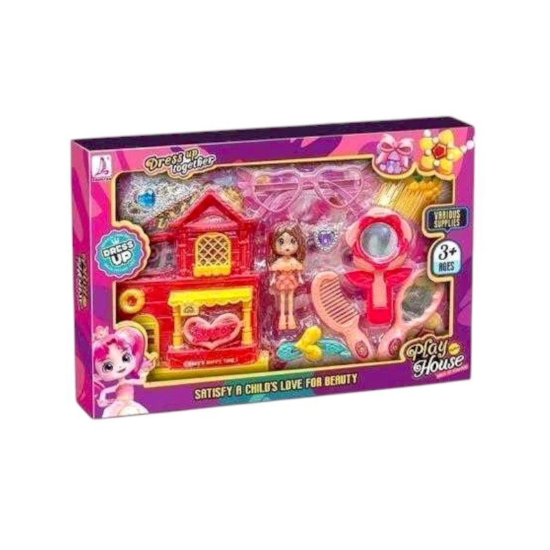 Μίνι κουκλόσπιτο με κούκλα και πλήρες σετ με εντυπωσιακά αξεσουάρ για ένα συναρπαστικό παιχνίδι ομορφιάς με τις φίλες σου!