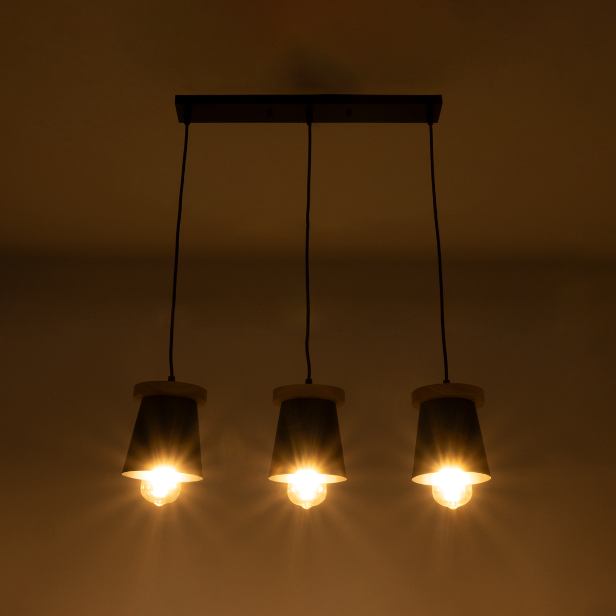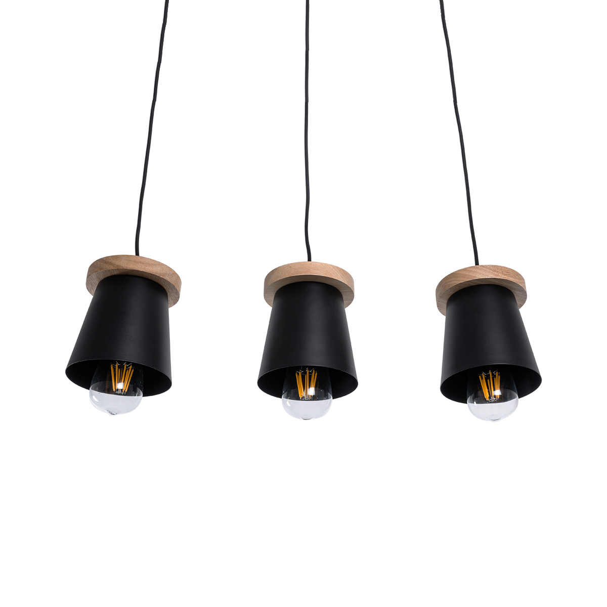 GloboStar® LANA 01425 ΣΕΤ Μοντέρνο Κρεμαστό Φωτιστικό Οροφής Τρίφωτο με Ξύλινη Βάση και Μαύρο Καπέλο Φ13 x Μ58 x Y17cm