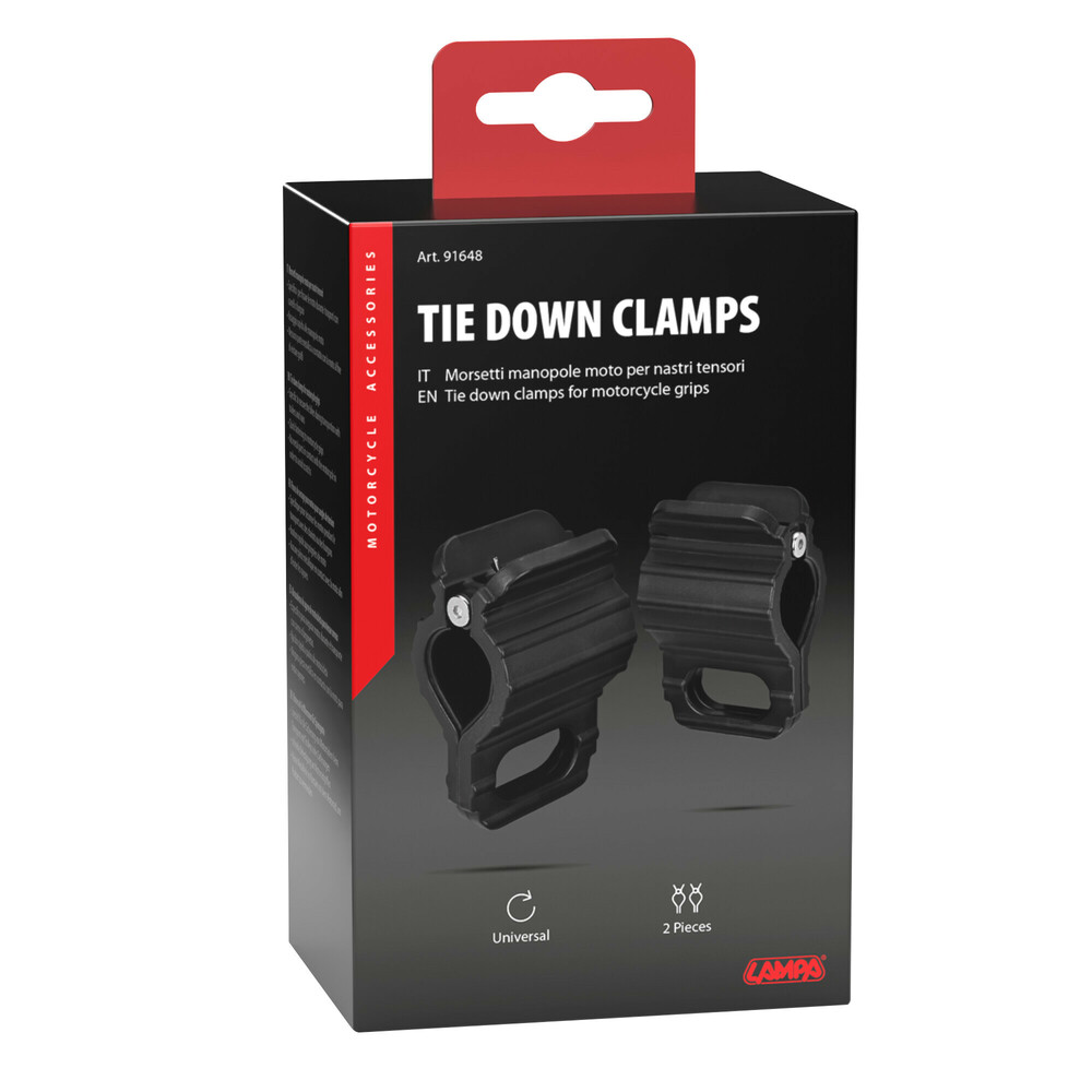 ΣΦΙΓΚΤΗΡΕΣ ΣΤΕΡΕΩΣΗΣ MOTO TIE DOWN CLAMPS ΓΙΑ ΣΤΗΡΙΞΗ ΑΠΟ ΤΑ ΧΕΡΟΥΛΙΑ ΣΕ ΜΑΥΡΟ ΧΡΩΜΑ LAMPA - 2 ΤΕΜ. Ασφάλιση των μοτοσυκλετών κατά τη μεταφορά με ρυμουλκούμενα και φορτηγά. Γρήγορη στερέωση σε λαβές μοτοσυκλέτας. Δεν υπάρχουν μεταλλικά μέρη σε επαφή με τη μοτοσυκλέτα για αποφυγή γρατσουνιών. Universal. Διαστάσεις: 54x112x70 mm. Συσκευασία 2 τεμαχίων