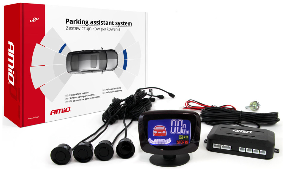 Σύστημα παρκαρίσματος 12v με 4 αισθητήρες σε μαύρο χρώμα 22mm και οθόνη led-graf, απο την εταιρεία ΑΜΙΟ, πολωνικής προέλευσης.