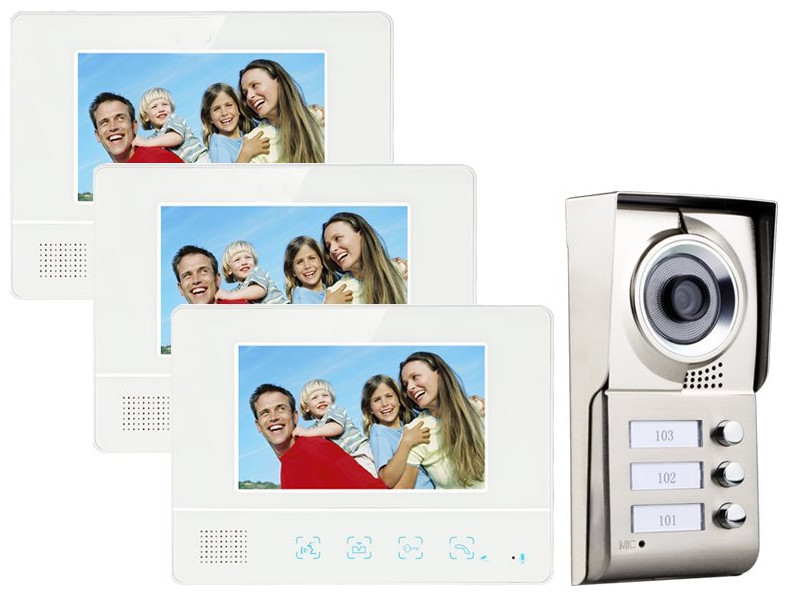 Σετ θυροτηλεόρασης 3 μόνιτορ & 1 κάμερα με τρία κουδούνια για πολυκατοικίες