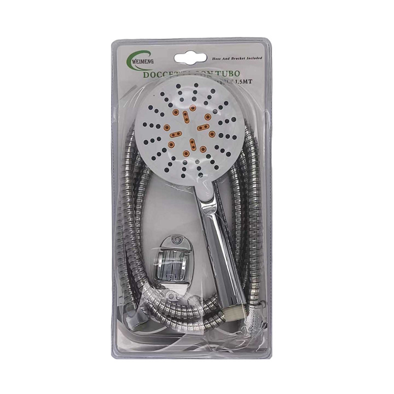 Τηλέφωνο-ακροφύσιο ντουζιέρας με 3 επιλογές πίεσης και σπιράλ σωλήνα μήκους 1.5 μέτρου, με όλα τα παρελκόμενα τοποθέτησης. Εύκολη τοποθέτηση σε όλες τις βρύσες μπανιέρας και ντουζιέρας. Το ακροφύσιο διαθέτει προστατευτικά σιλικόνης στις εξόδους νερού, που αποτρέπουν την συσσώρευση αλάτων. Υψηλή ποιότητα κατασκευής με χρωμέ φινίρισμα, υψηλής ανθεκτικότητας.
