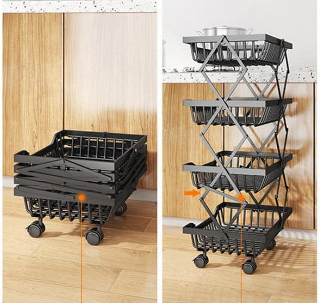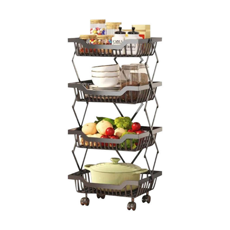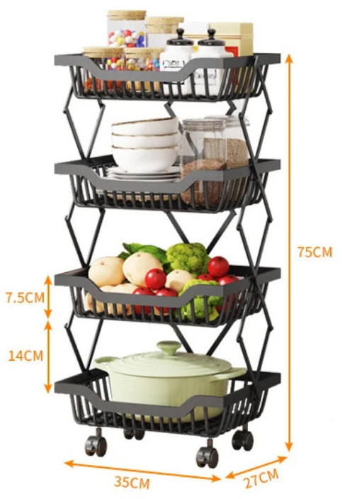 Μεταλλική ραφιέρα τετραώροφη, με ρόδες για εύκολη μετακίνηση. Πτυσσόμενη για να μην καταλαμβάνει χώρο όταν δεν χρησιμοποιείται, με εργονομικό σχεδιασμό για εύκολη καθημερινή χρήση.