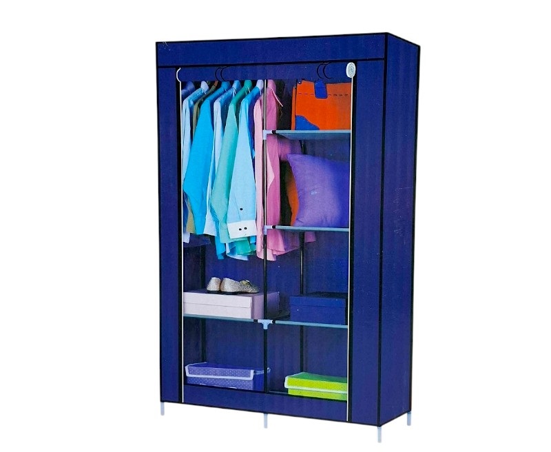 Υφασμάτινη ντουλάπα με ράφια, κατάλληλη για παπούτσια, ρούχα, λευκά είδη και οτιδήποτε επιθυμείτε να αποθηκεύσετε. Εύκολα συναρμολογούμενη, με στιβαρή κατασκευή με μεταλλικό σκελετό και ανθεκτικό ύφασμα non-woven που αντιστέκεται στην υγρασία και τη σκόνη. Το μπροστινό μέρος ανοίγει με φερμουάρ και τυλίγεται σε ρολό το οποίο στηρίζεται με ταινίες velcro για εύκολη πρόσβαση. Ιδανική για το σπίτι, το εξοχικό ή την αποθήκη σας.