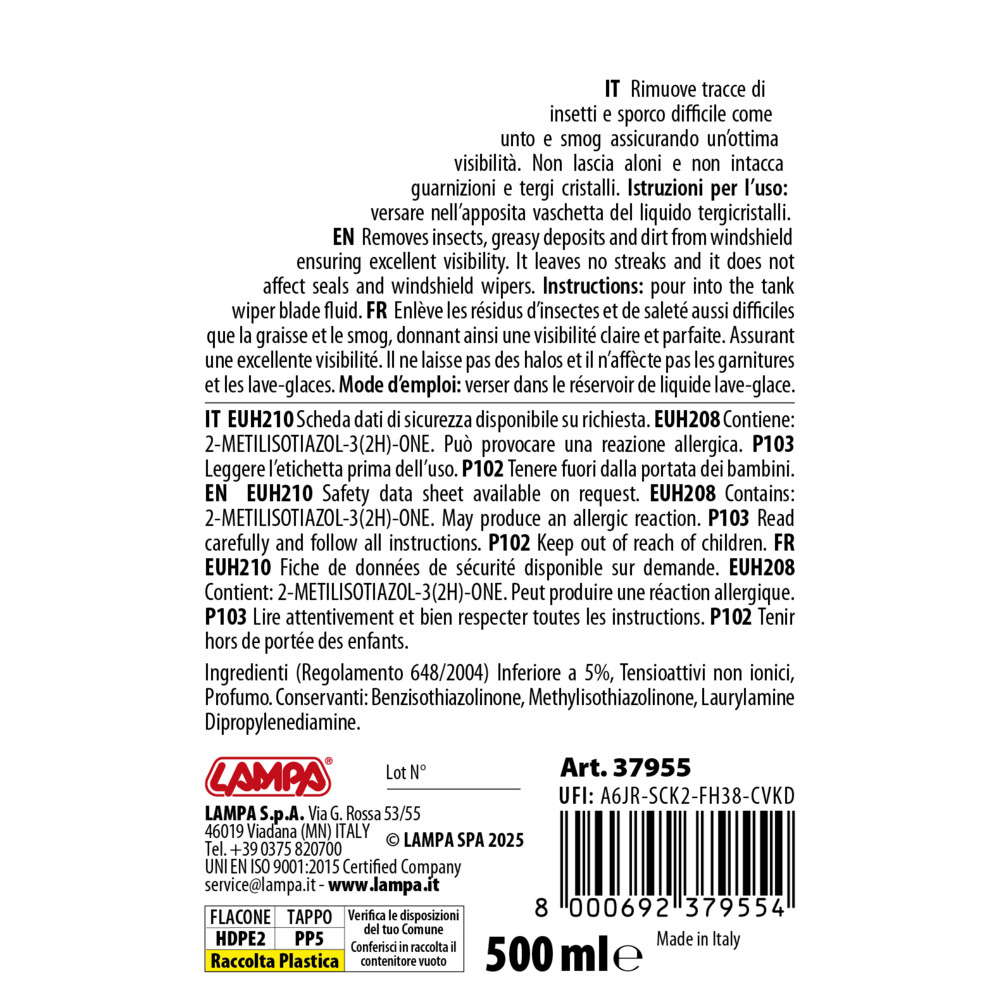 ΥΓΡΟ ΥΑΛΟΚΑΘΑΡΙΣΤΗΡΩΝ SUMMER SCREEN WASH ΜΕ ΑΡΩΜΑ ΛΕΒΑΝΤΑ (ΕΤΟΙΜΟ ΓΙΑ ΧΡΗΣΗ) 500ml