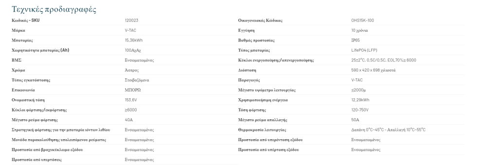 Το σύστημα V-TAC SKU 120023 (OHS15K-100) είναι μια αποτελεσματική λύση για αποθήκευση ενέργειας υψηλής τάσης. Αυτό το στοιβαζόμενο σύστημα προσφέρει ονομαστική χωρητικότητα 15,36 kWh και ωφέλιμη χωρητικότητα 12,29 kWh, εξασφαλίζοντας αξιόπιστη και σταθερή παροχή ισχύος για διαφορετικές ανάγκες. Αποτελείται από τρία πλαίσια των 5,12 kWh το καθένα.