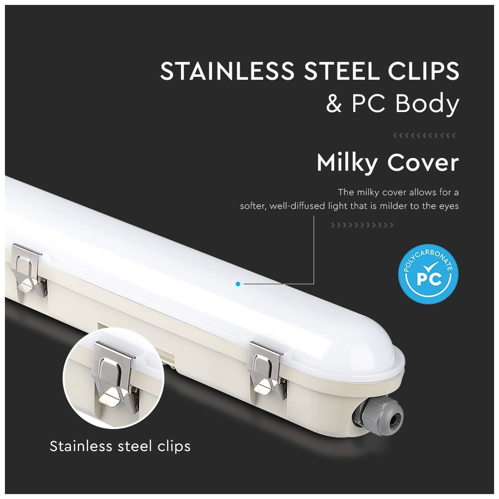 V-TAC LED Αδιάβροχο φωτιστικό Samsung SMD 36W 1200mm Ψυχρό λευκό 6400K (120LM/W) Milky cover με ανοξείδωτα κλιπς 20216