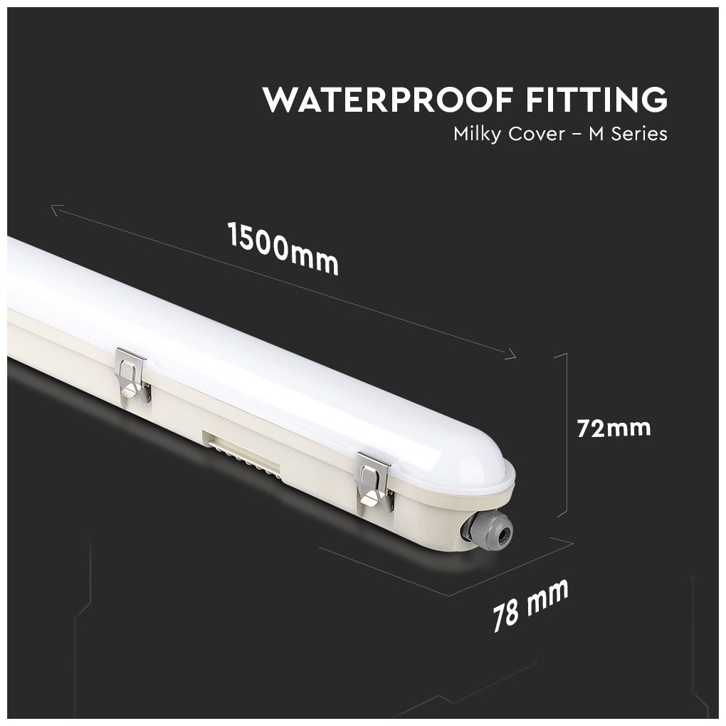 V-TAC LED Αδιάβροχο φωτιστικό Samsung SMD 48W 1500mm Φυσικό λευκό 4000K ασφαλείας (120LM/W) Milky cover με ανοξείδωτα κλιπς 20221