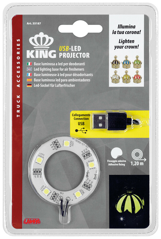 Βάση φωτιζόμενη αρωματικού KING λευκού φωτισμού led με καλώδιο φόρτισης usb 5v/120cm, απο την εταιρεία LAMPA, ιταλικής προέλευσης.