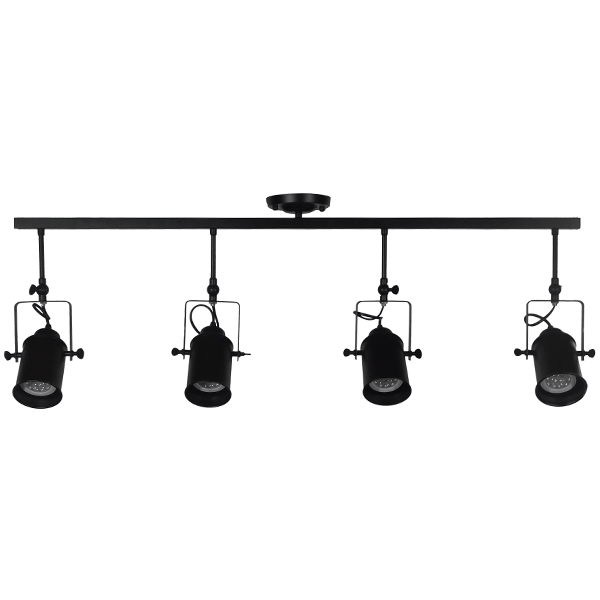 GloboStar® HOLLYWOOD 01156 Vintage Φωτιστικό Οροφής Ράγα Πολύφωτο 4 x E27 IP20 Μαύρο Μέταλλο - Μ13 x Π110 x Υ38cm