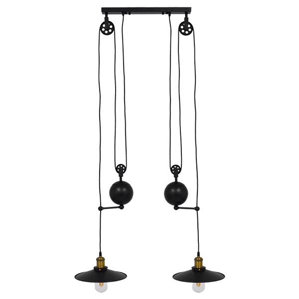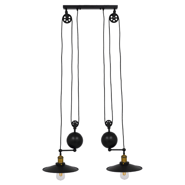 GloboStar® CARILO 01550 Vintage Industrial Κρεμαστό Φωτιστικό Οροφής Δίφωτο Μαύρο Μεταλλικό με Ρυθμιζόμενη Ανάρτηση Μ72 x Π26 x Υ120cm