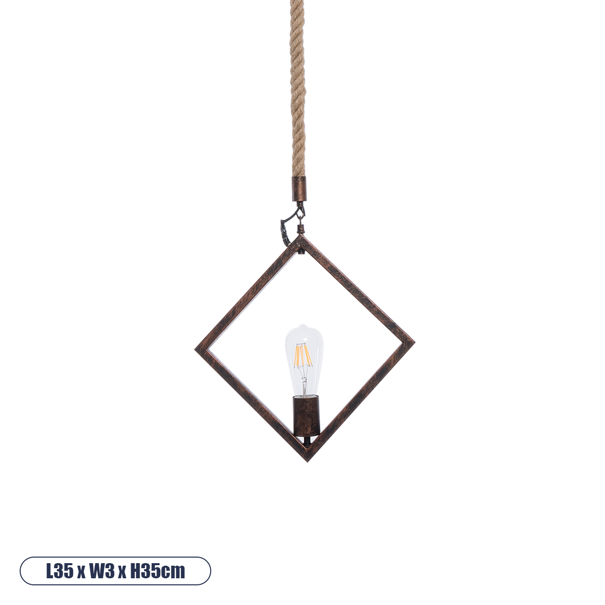 GLOBOSTAR® ALCO 01023 Vintage Κρεμαστό Φωτιστικό Οροφής με Ντουί 1 x E27 AC 220-240V IP20 - Χάλκινο & Μπεζ - Μ35 x Π3 x Υ35cm