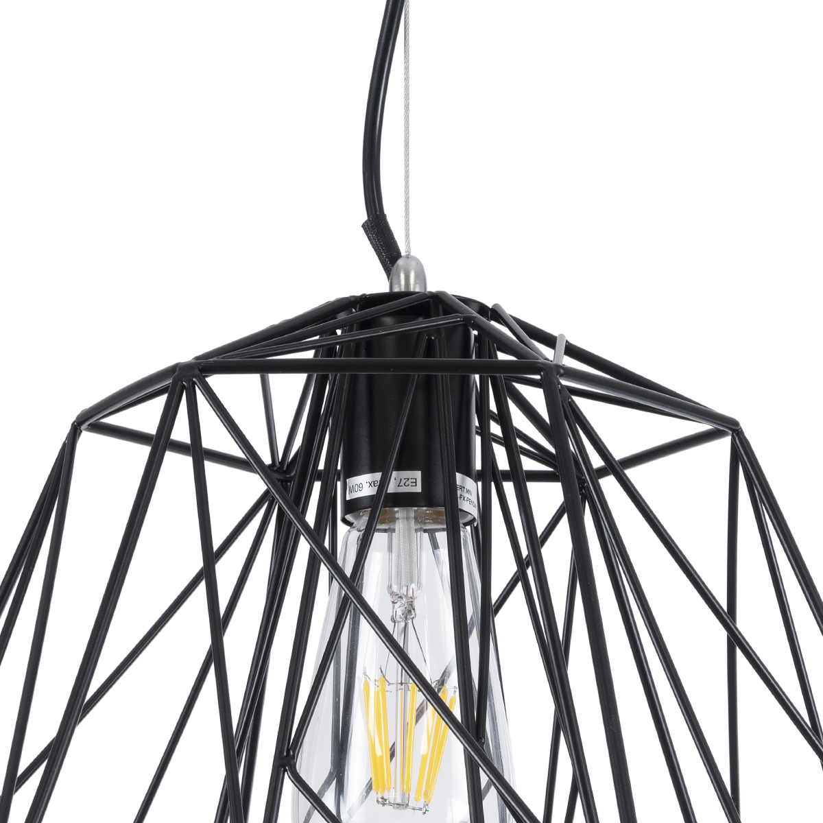 GloboStar® GRID 01022 Vintage Kρεμαστό Φωτιστικό Πλέγμα Μονόφωτο 1 x E27 IP20 Μαύρο Μέταλλο - Μ40 x Π40 x Υ33cm