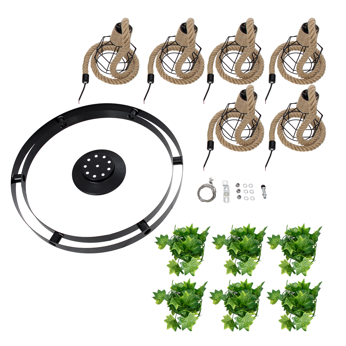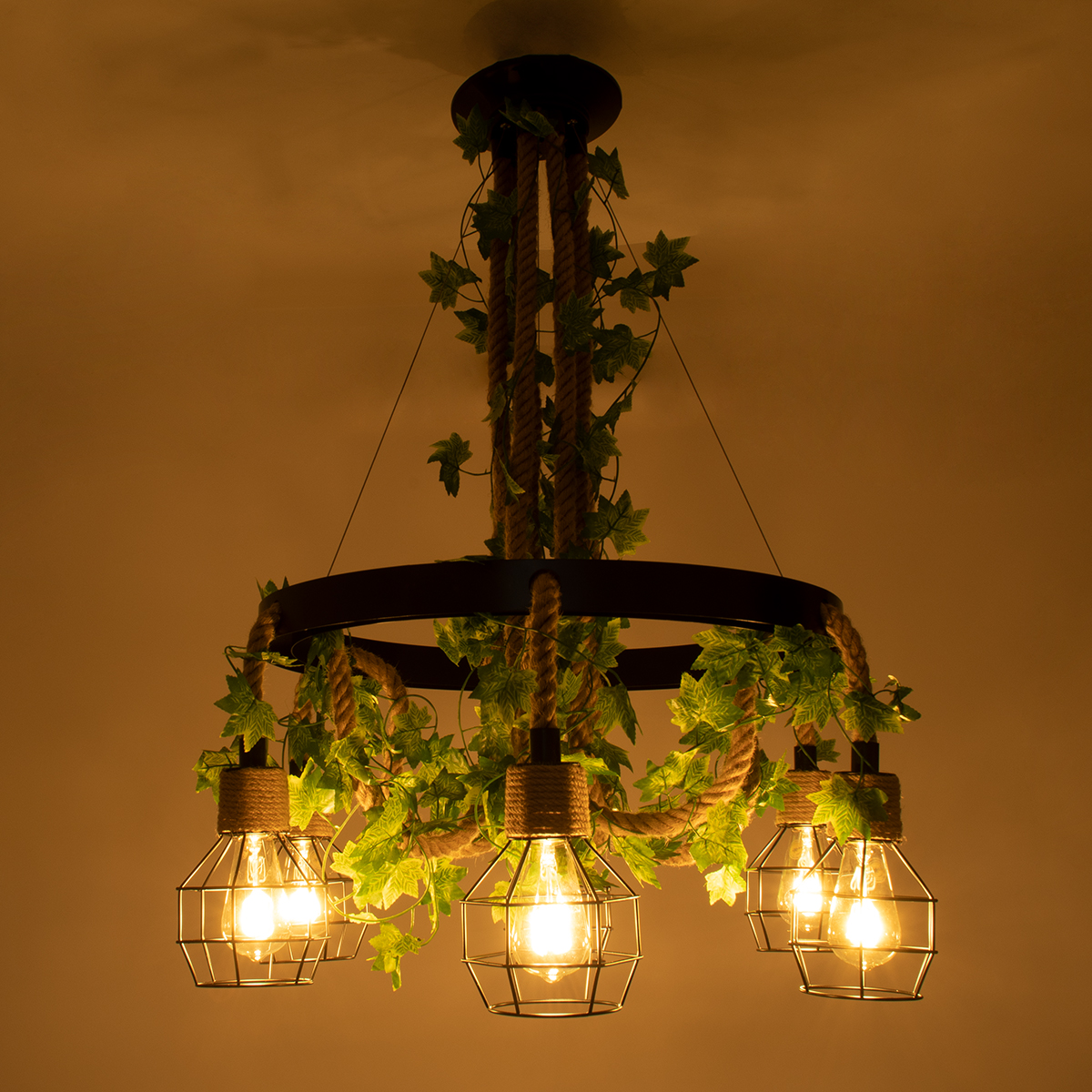 GLOBOSTAR® HELLET 01193 Vintage Κρεμαστό Φωτιστικό Οροφής με Ντουί 6 x E27 AC 220-240V IP20 - Μαύρο & Πράσινο - Μ72 x Π72 x Υ80cm
