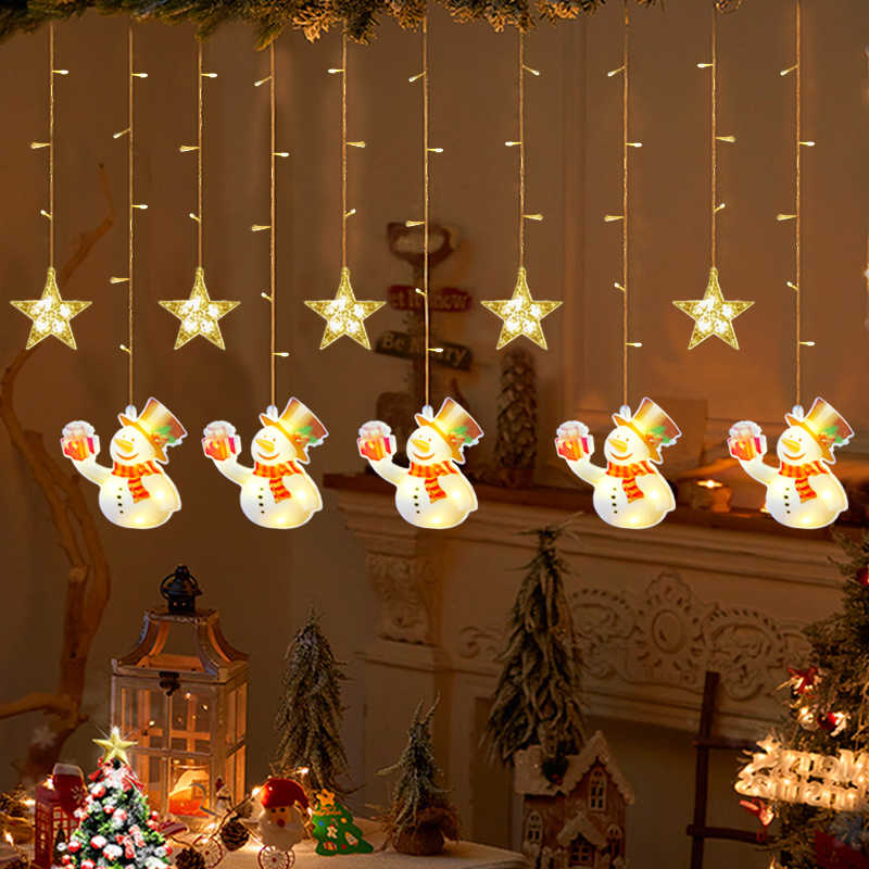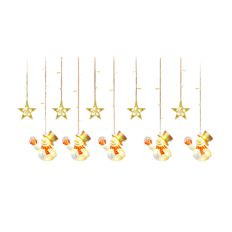 Χριστουγεννιάτικα διακοσμητικά φώτα LED τύπου κουρτίνα με σχέδιο χιονάνθρωποι και αστέρια.