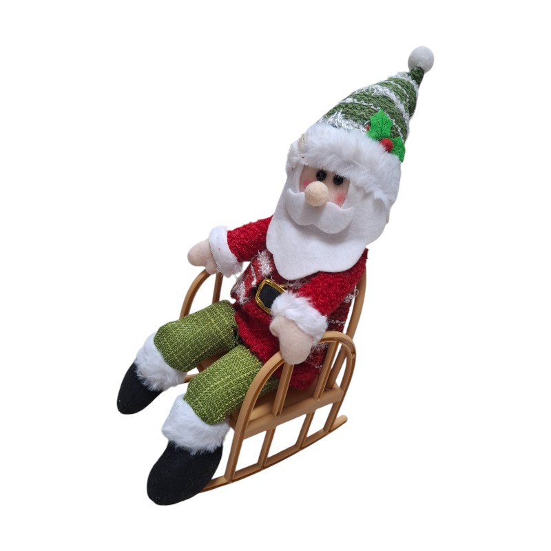 Χριστουγεννιάτικη, λούτρινη, διακοσμητική φιγούρα με κουνιστή καρέκλα, σε υπέροχο σχεδιασμό και εντυπωσιακές, ρεαλιστικές λεπτομέρειες, που μπορεί να ταιριάξει παντού και να προσδώσει ένα χαριτωμένο γιορτινό τόνο σε κάθε χώρο.