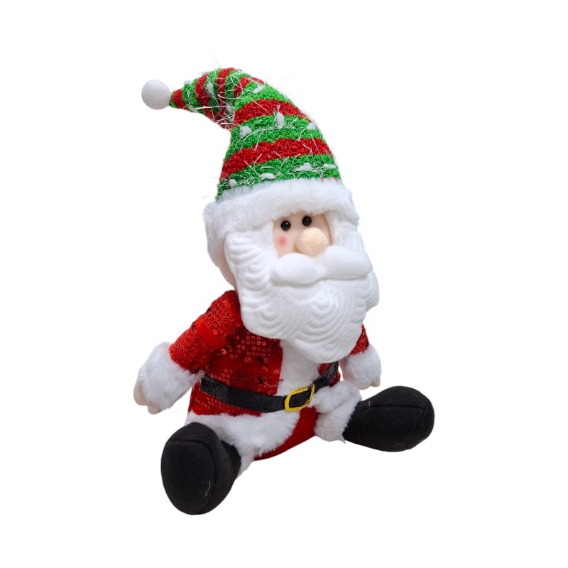 Χριστουγεννιάτικη, λούτρινη, διακοσμητική φιγούρα, καθιστή, σε υπέροχο σχεδιασμό και εντυπωσιακές, ρεαλιστικές λεπτομέρειες, που μπορεί να ταιριάξει παντού και να προσδώσει ένα χαριτωμένο γιορτινό τόνο σε κάθε χώρο.