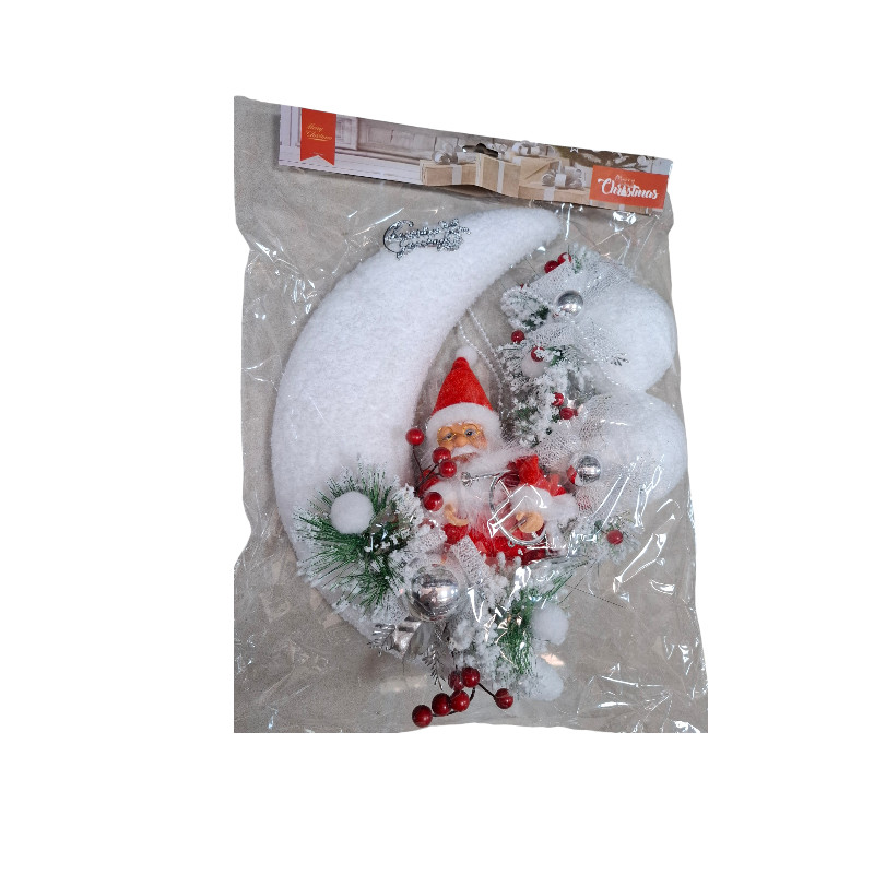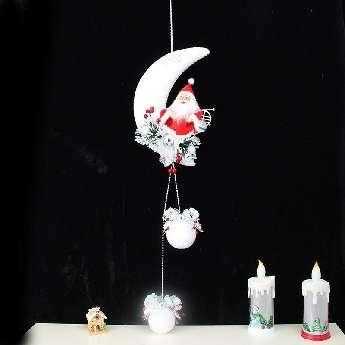 Χριστουγεννιάτικο κρεμαστό διακοσμητικό φεγγάρι με φιγούρα Άγιου Βασίλη, και εντυπωσιακό συνδυασμό στολιδιών με υπέροχες λεπτομέρειες. Διαστάσεις: 110*22cm.