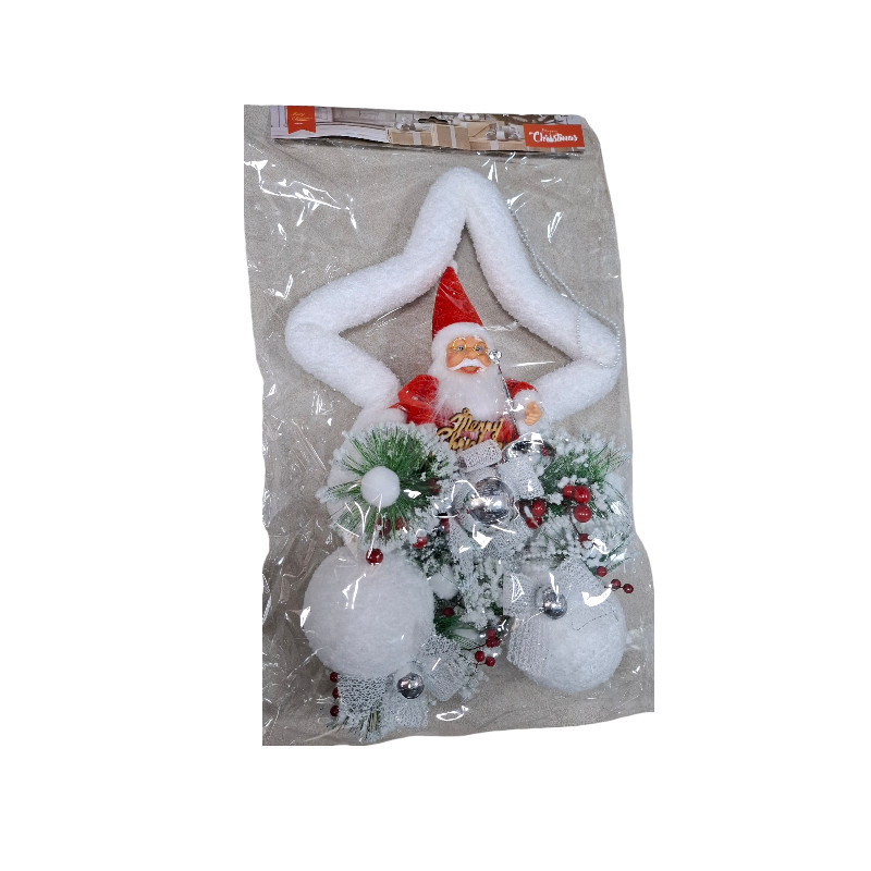 Χριστουγεννιάτικο κρεμαστό διακοσμητικό αστέρι με φιγούρα Άγιου Βασίλη, και εντυπωσιακό συνδυασμό στολιδιών με υπέροχες λεπτομέρειες. Διαστάσεις: 110*32cm.