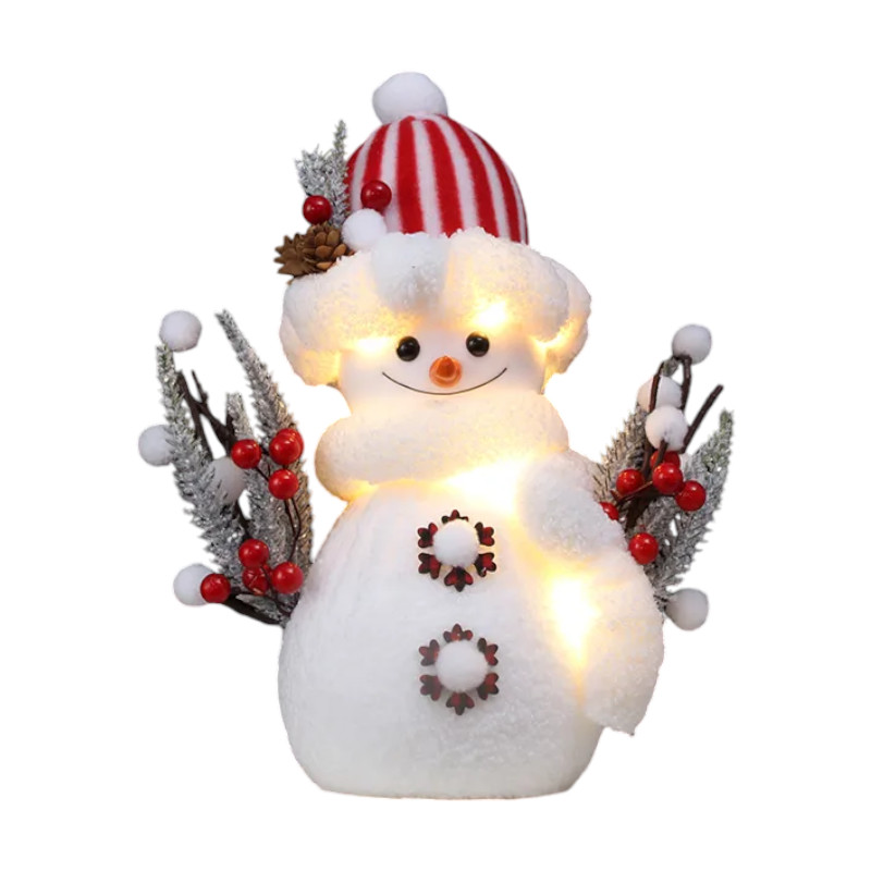 Χριστουγεννιάτικο επιτραπέζιο διακοσμητικό Χιονάνθρωπος με ατμοσφαιρικό φωτισμό LED και υπέροχες σχεδιαστικές λεπτομέρειες. Μπορεί να τοποθετηθεί κάτω από το δέντρο σας ή σε οποιαδήποτε επιφάνεια, προσφέροντας μια χαριτωμένη γιορτινή νότα σε κάθε χώρο. Διαστάσεις: 32*21cm.