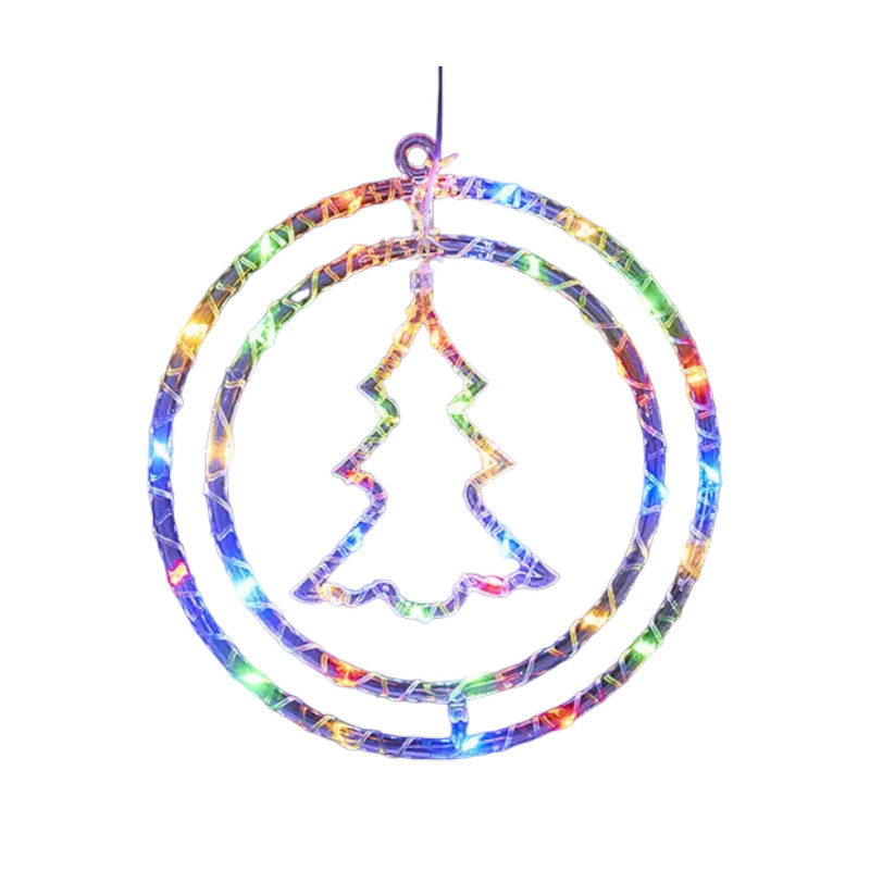 Χριστουγεννιάτικο φωτεινό διακοσμητικό 3D LED με διαφανείς κρίκους και σχέδιο. Πολύχρωμος φωτισμός που αντανακλά στη διαφάνεια και δημιουργεί ενα εντυπωσιακό εφέ. Διάμετρος: 32cm.