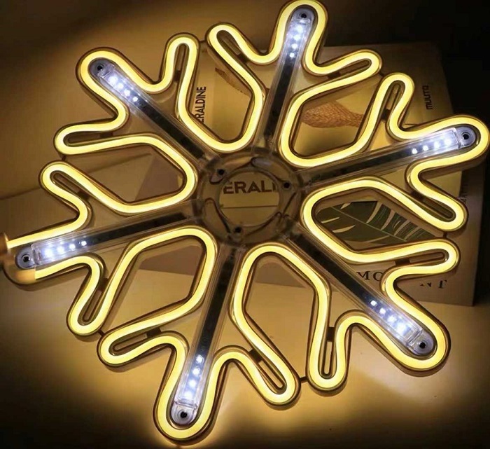 Χριστουγεννιάτικο φωτεινό διακοσμητικό σε σχέδιο Χιονονιφάδα με φωτοσωλήνα LED Neon και ενδιάμεσα φωτάκια με γραμμική κίνηση που δημιουργούν ένα εντυπωσιακό εφέ φωτισμού.