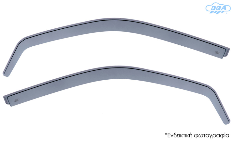 Ανεμοθραύστες παραθύρων από την εταιρία DGA, πορτογαλικής προέλευσης, ειδικά σχεδιασμένοι για να ταιριάζουν ακριβώς στα παράθυρα του αυτοκινήτου σας (μαρκέ προϊόν).       	Σκούρα φιμέ απόχρωση, όπου κατά την κατασκευή, ο έλεγχος χρώματος εκτελείται από ηλεκτρονικό φασματοφωτόμετρο για να διασφαλιστεί η ακρίβεια στην αναπαραγωγή του χρώματος.  	Υλικό: Πιστοποιημένο χυτό ακρυλικό γυαλί ή αλλιώς plexiglas (cast acrylic glass) με υψηλή UV προστασία, το οποίο φέρει έγκριση TÜV – ISO 9001: 2000 and TIS 18001.  	Εύκαμπτο και πιο ελαφρύ υλικό από το πλαστικό, η σύνθεσή του μένει αναλλοίωτη στον χρόνο, ανθεκτικό στις καιρικές συνθήκες και στις γρατζουνιές.      Οι ανεμοθραύστες παραθύρων DGA αποτελούν το ιδανικό αξεσουάρ για την προστασία των επιβατών από την άμεση επαφή τους με τον εισερχόμενο αέρα των παραθύρων κατά την μεταφορά τους. Λόγω του αεροδυναμικού σχεδιασμού τους και της φυσικής κλίσης τους:      	Απωθούν την βροχή, απομακρύνοντας την, εμποδίζοντας τις σταγόνες να μπουν στην εσωτερική καμπίνα, ακόμη και όταν τα παράθυρα είναι ανοικτά.   	Βοηθούν στην μείωση της σκόνης και της βρωμιάς επάνω στα τζάμια, προλαμβάνουν το θάμπωμα των τζαμιών κατά την χειμερινή περίοδο ή τις βροχερές μέρες και επιτρέπουν τον εξαερισμό του εσωτερικού χώρου.   	Έχουν τέλεια εφαρμογή με εσοχή στο ύψος του καθρέφτη, χωρίς να εμποδίζουν την ορατότητα.       Οι ανεμοθραύστες DGA τοποθετούνται χωνευτοί μέσα στην υποδοχή του τζαμιού, στην τσιμούχα του παραθύρου, εύκολα και γρήγορα, χωρίς την χρήση εργαλείων ή κλιπ:      	Με ταινία διπλής όψης 3M, η οποία φέρει εγκρίσεις ISO/TS 16949:2009 και ISO 14001:2004 - περιλαμβάνονται στην συσκευασία.  	Δεν επηρεάζουν την εύρυθμη λειτουργία του τζαμιού, τον μηχανισμό του παραθύρου ή τις αντιηλιακές μεμβράνες σας (φιλμ παραθύρων)      ΣΗΜΕΙΩΣΗ: Για την σωστή επιλογή του κατάλληλου ανεμοθραύστη για το όχημα σας, θα πρέπει να γνωρίζετε με ακρίβεια τη μάρκα, το μοντέλο και τη χρονολογία κατασκευής του ή να κάνετε την αναζήτησή σας με βάση τον αριθμό πλαισίου του αυτοκινήτου, όπως αναγράφεται στην άδεια κυκλοφορίας.    Όλα τα αξεσουάρ DGA ελέγχονται διεξοδικά πριν από τη διανομή τους και συμμορφώνονται με όλες τις απαιτήσεις Υγείας, Ασφάλειας και Περιβάλλοντος της ΕΕ.    ΠΡΟΣΟΧΗ!! Η φωτογραφία που είναι αναρτημένη ενδέχεται να είναι ενδεικτική, καθώς ο εκάστοτε ανεμοθραύστης είναι σχεδιασμένος αποκλειστικά με βάση τις μετρήσεις του εκάστοτε οχήματος. Eπίσης, ενδέχεται να υπάρχει μικρή απόκλιση στα χρώματα της προεπισκόπησης του προϊόντος, η οποία οφείλεται αποκλειστικά στη διαφοροποίηση της κάθε οθόνης υπολογιστή, laptop, smartphone, tablet ή και άλλης ηλεκτρονικής συσκευής που χρησιμοποιείτε.    Συσκευασία 2 τεμαχίων (ζευγάρι).